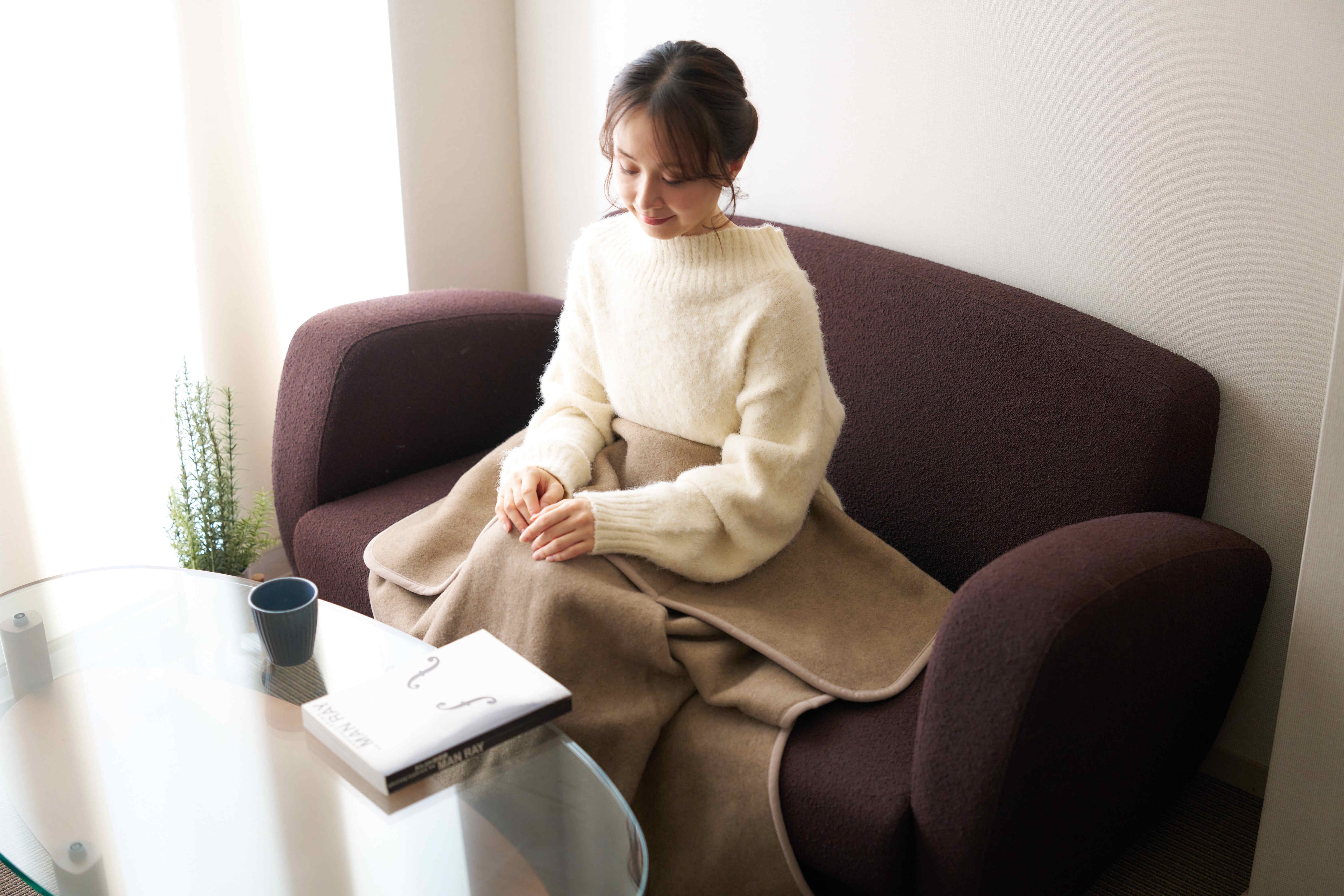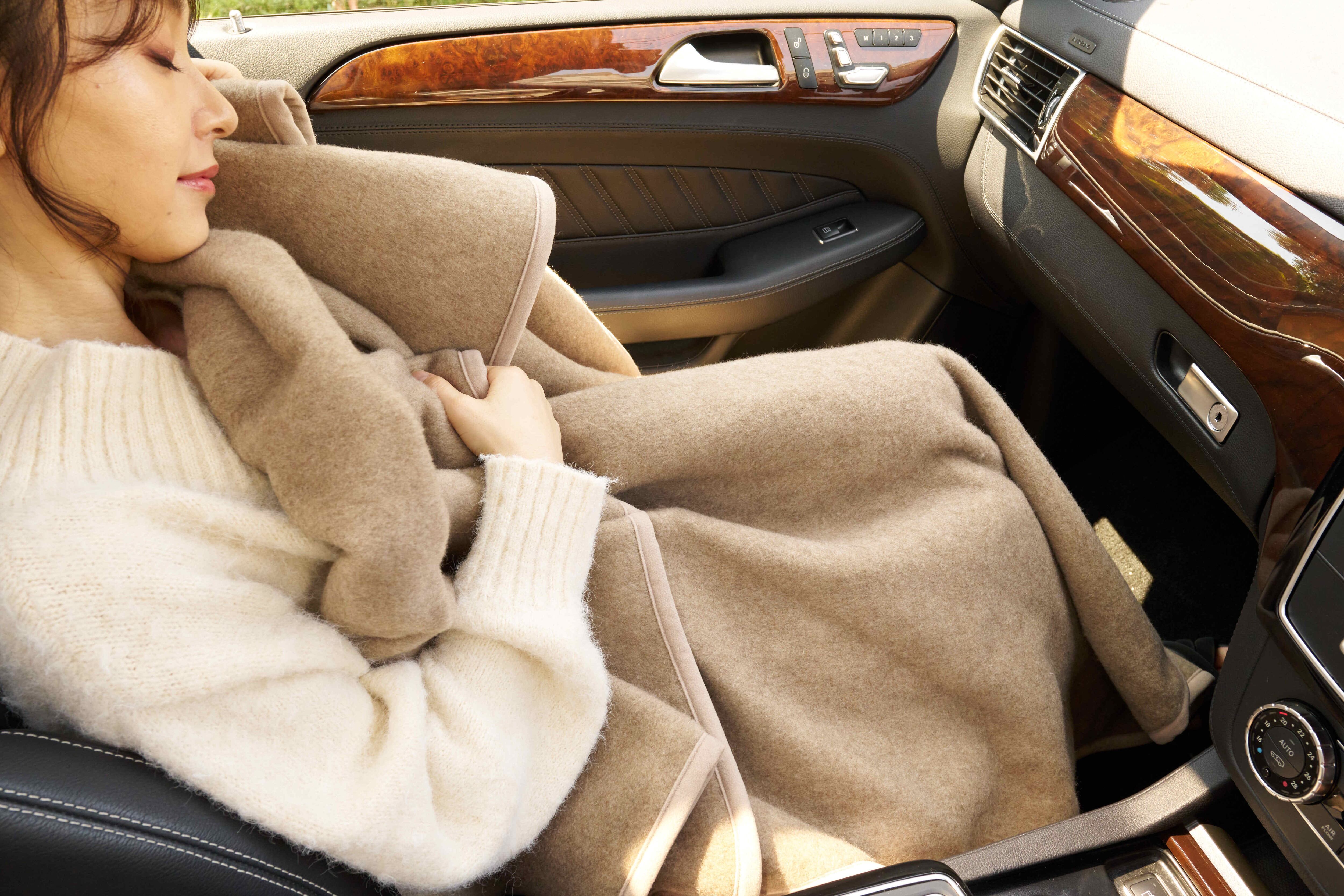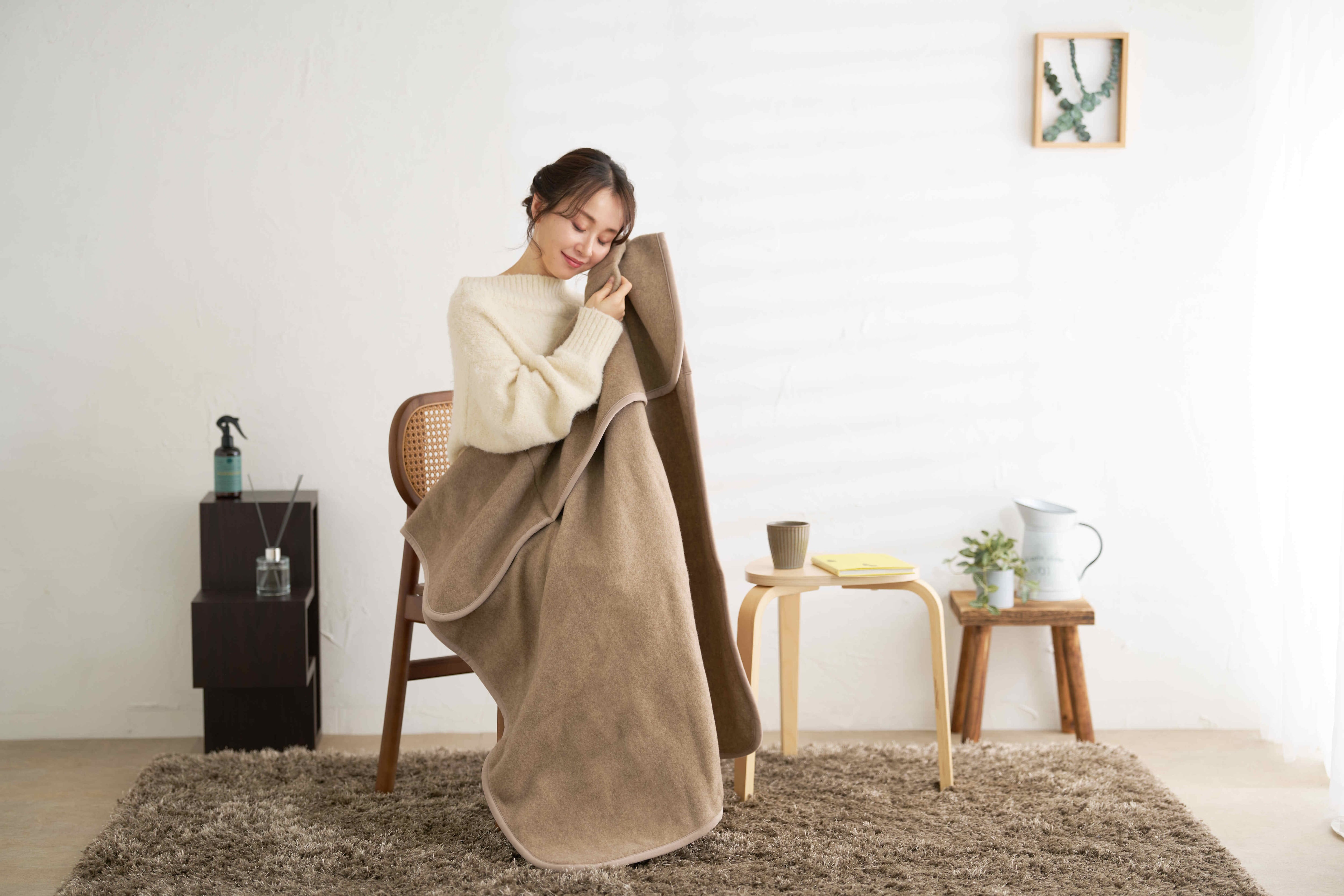 急に寒くなった時もすぐに取り出せてとても便利です。カシミヤ毛布(毛羽部分)の生地で作っていますので肌触りは柔らかく軽くて暖かいひざ掛けです。今回数量限定でご提供させていただきます。